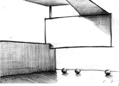 Deo nastave posvećen studijama trodimenzionalnosti, zasniva se na crtežima i skicama apstraktnih struktura. Ove vežbe omogućuju đacima da iz uglednih primera upoznaju i usvoje dobre prostorne odnose. |
